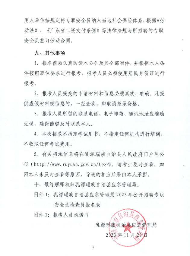 2023年韶关乳源瑶族自治县招聘专职安全检查员公告